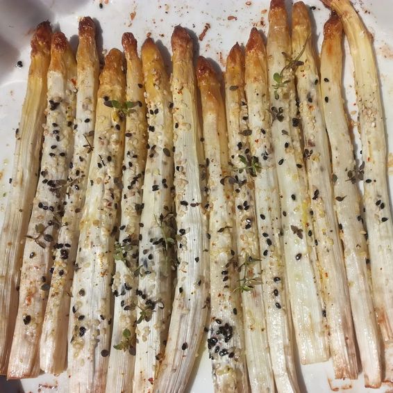 Parsemer d'épices, inciser éventuellement les asperges avec de la sauge.
